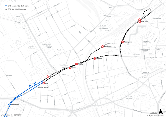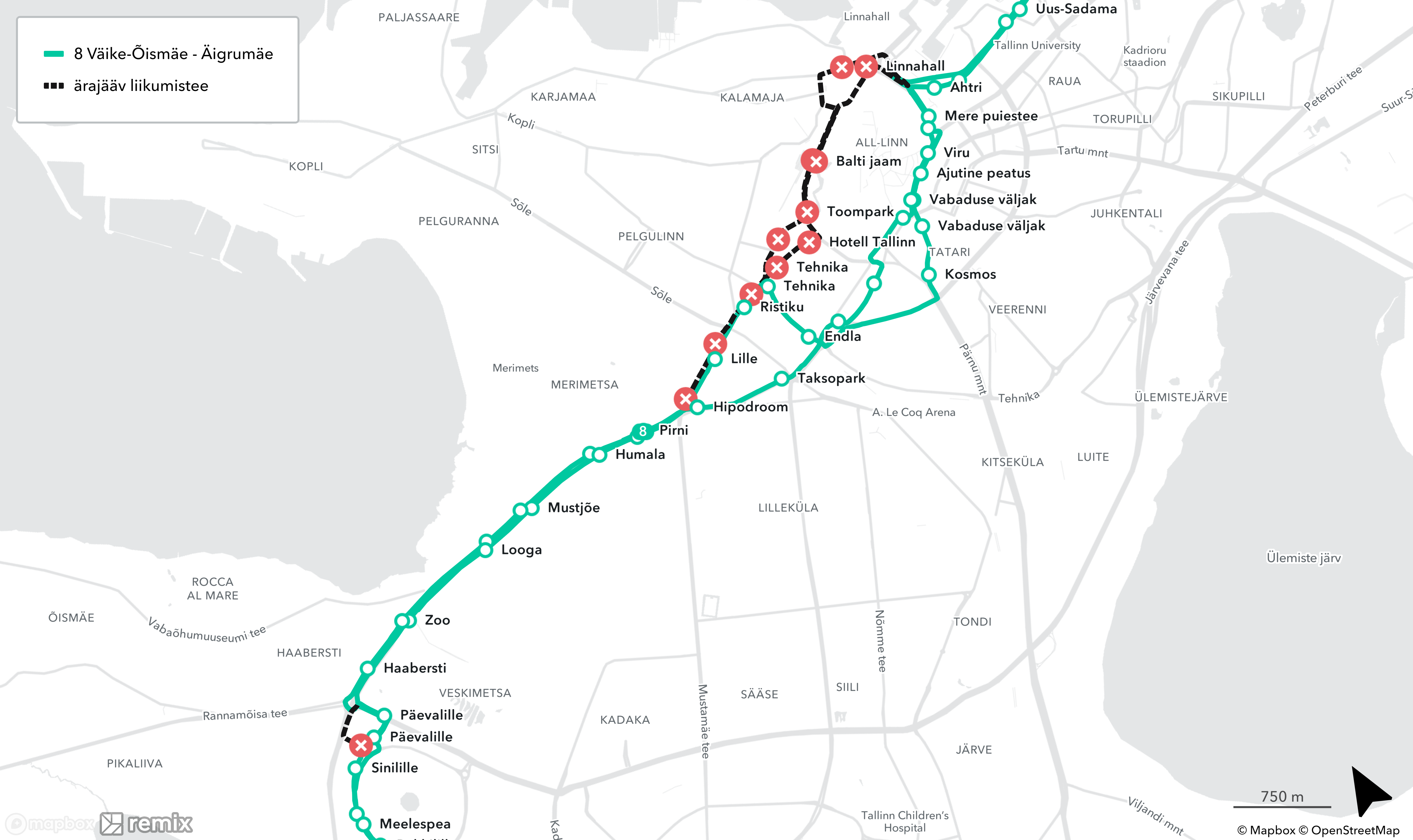❌ ära jäävad peatused Väike-Õismäe suunal: Linnahall, Balti jaam, Kelmiküla, Ristiku, Lille, Hipodroom