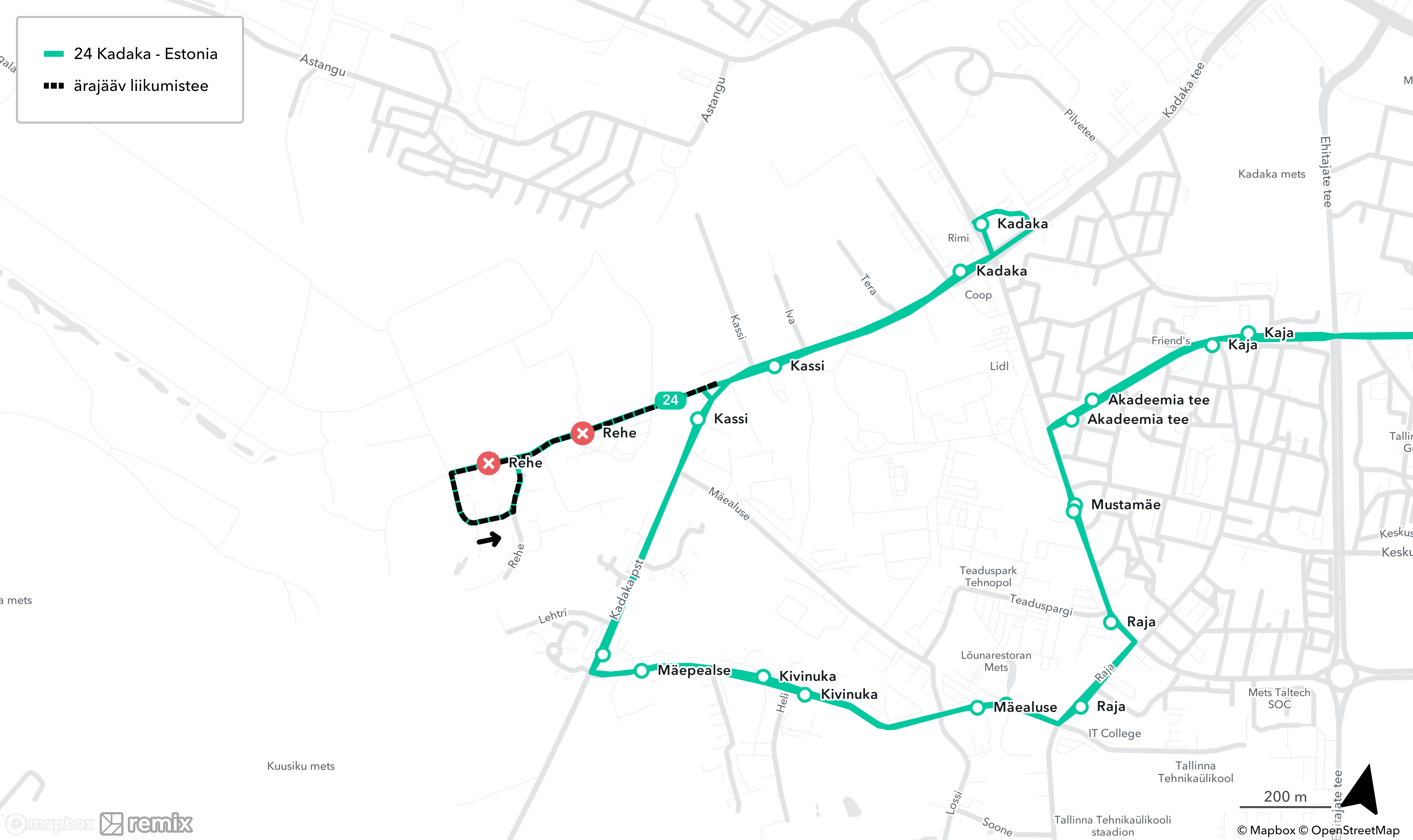 ❌ ära jääb mõlemal suunal Rehe peatus