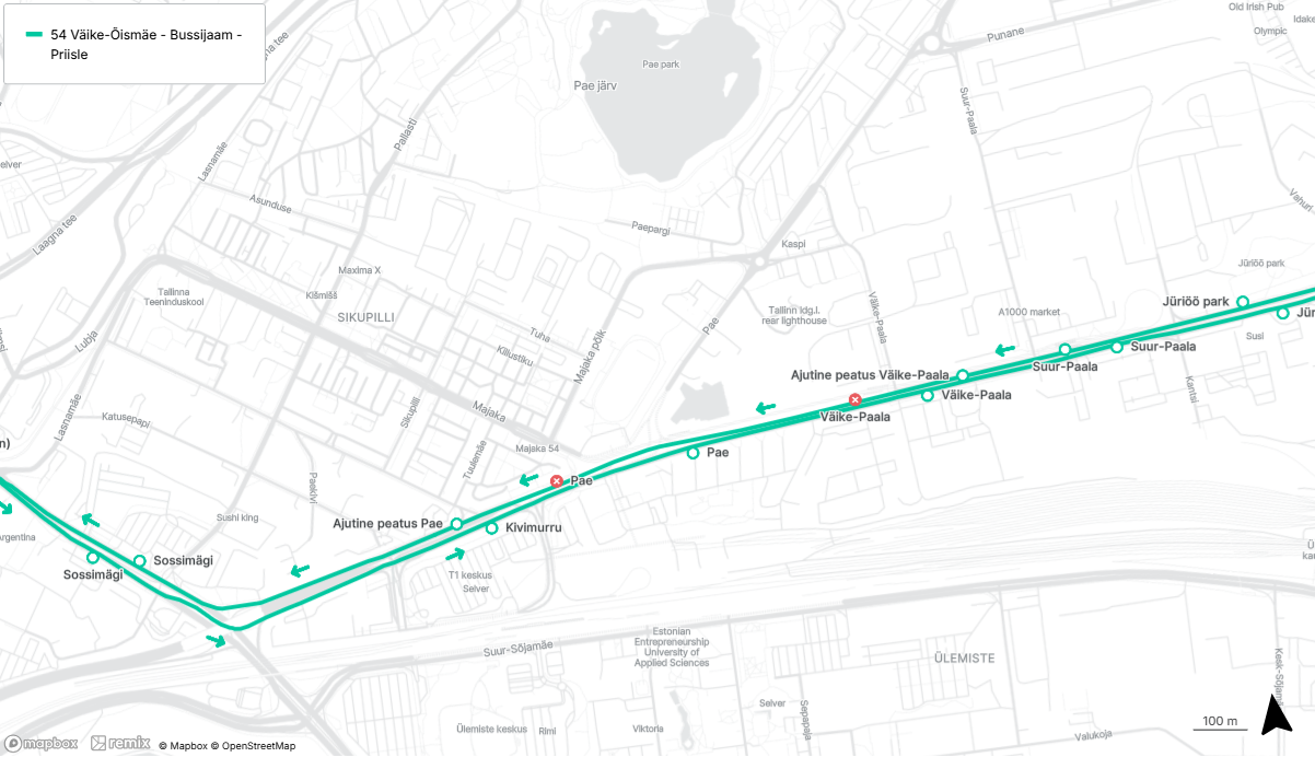 ❌ Ära jääb Väike-Õismäe suunal peatus Väike-Paala peale Väike-Paala tänava ristmikku ja peatus Pae peale Peterburi tee ja Majaka tänava ristmikku