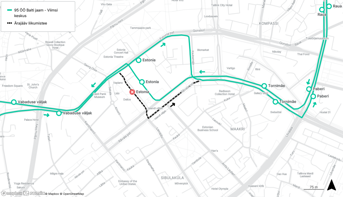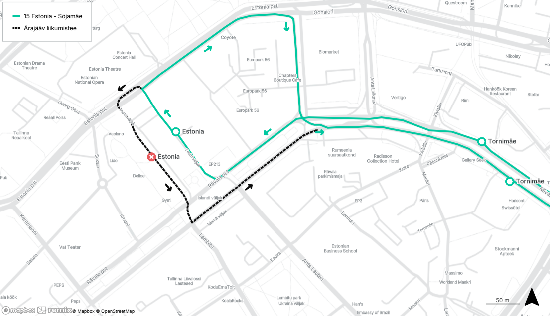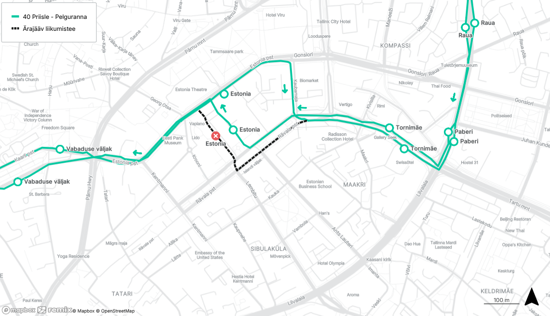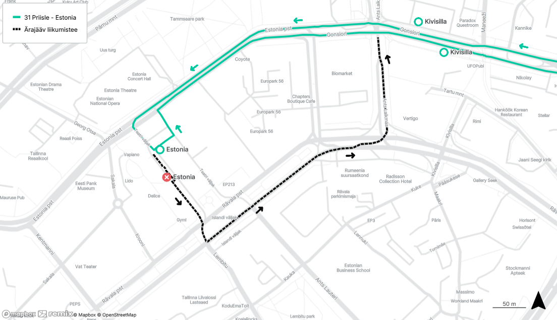 ❌ Ära jääb Estonia ja Priisle suunal peatus Estonia Teatri väljakul (Solarise kõrval)